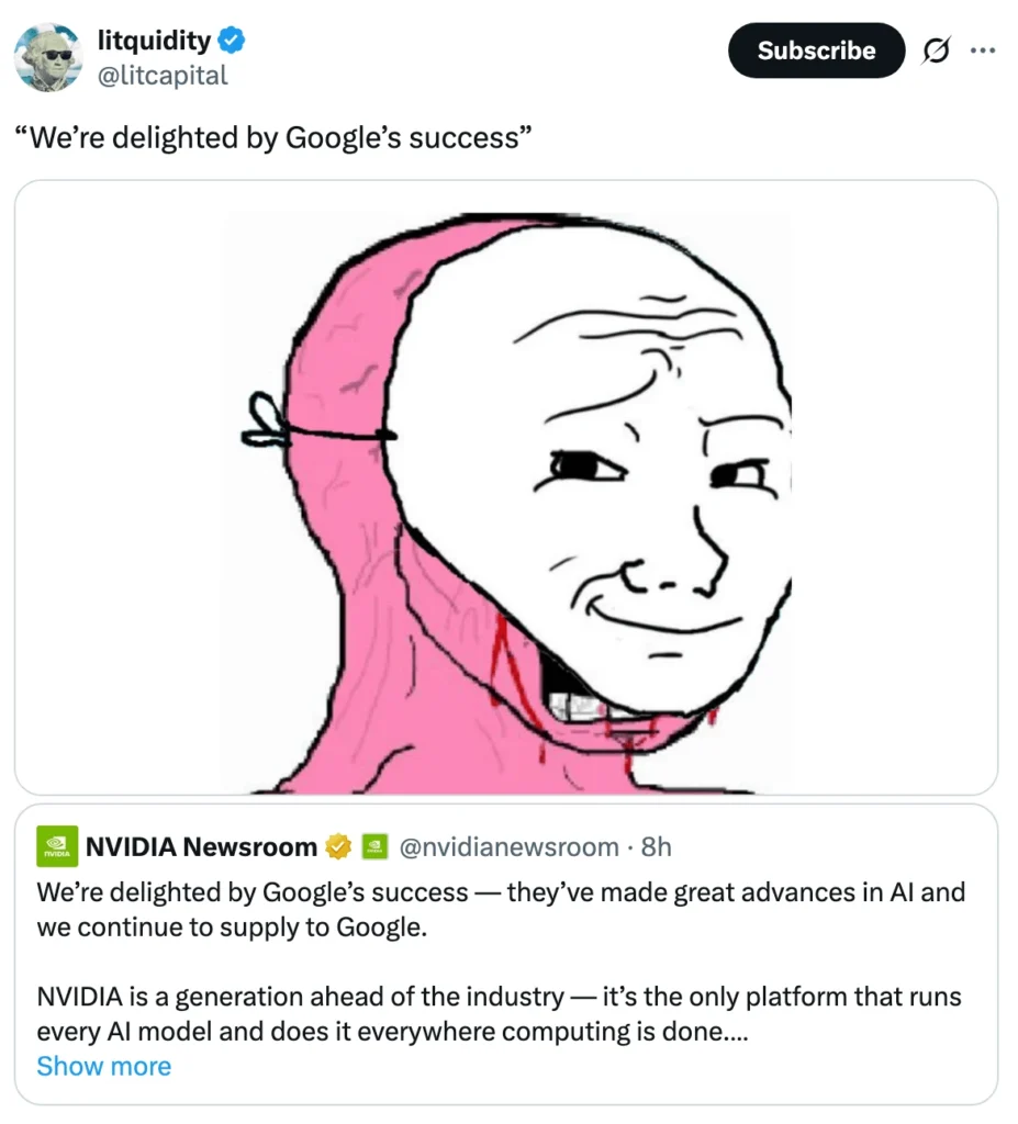 Nvidia Corp. shares fell on a report that Meta Platforms Inc. is in talks to spend billions on Google’s AI chips, suggesting the internet search leader is making headway in efforts to rival the industry’s bestselling AI accelerator. ($BBG)